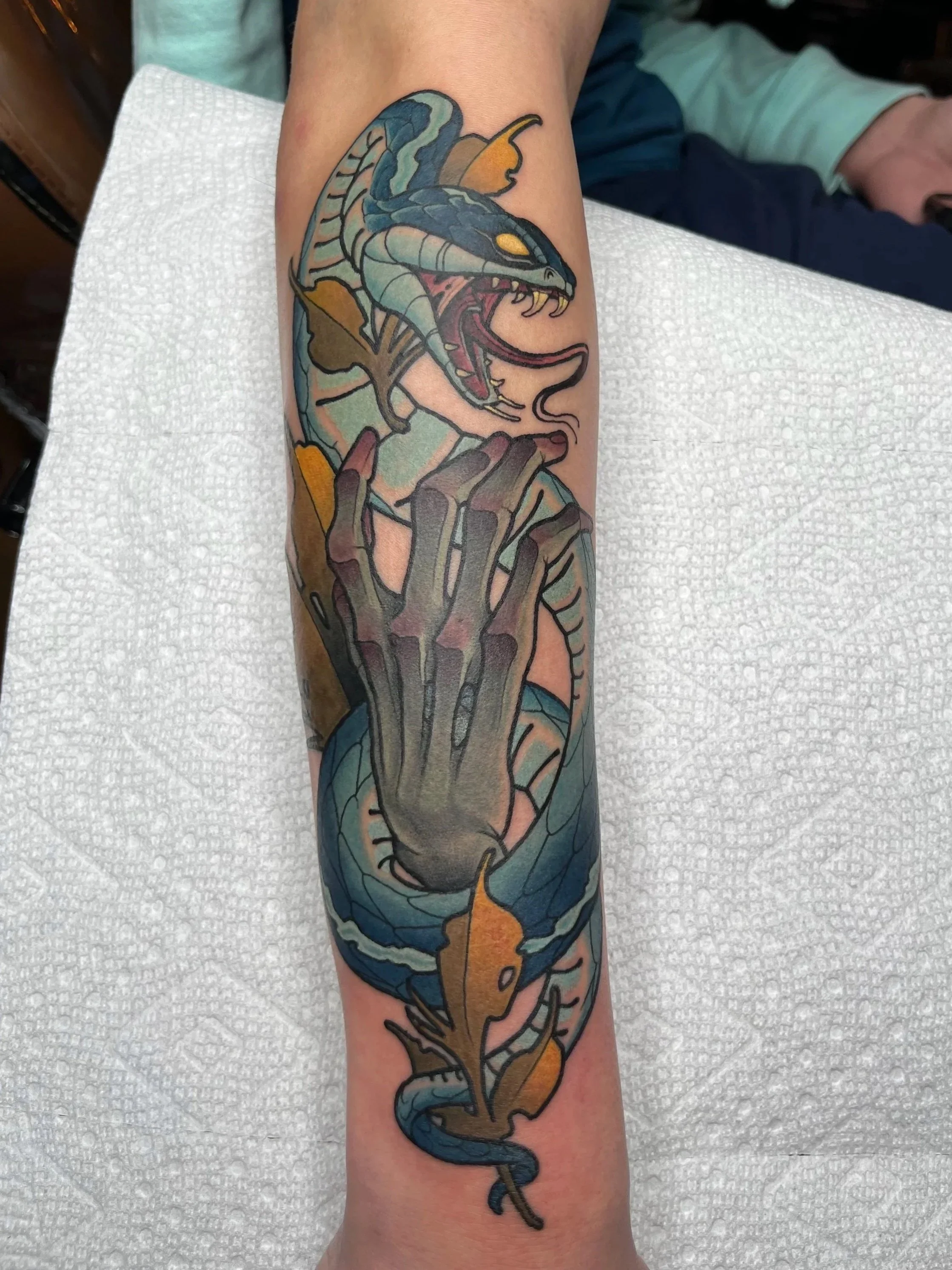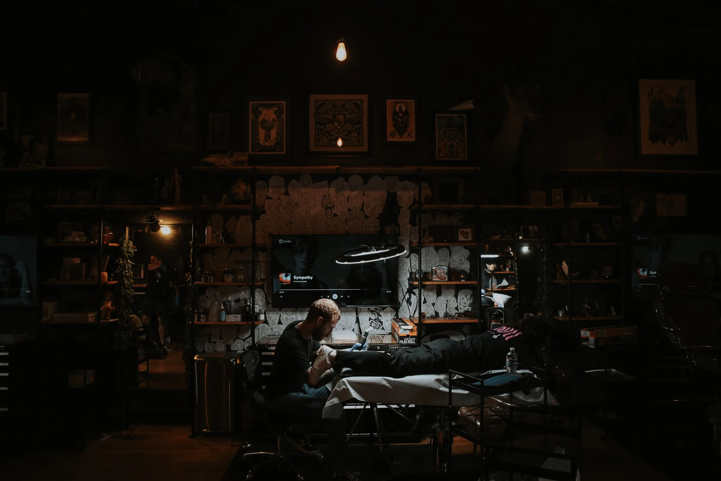 I’ve been working on an arm sleeve with Nathan Rice since 2022 and have spent many hours in the shop since then. There’s almost always a silly movie on and all the other artists are so welcoming and friendly! 10/10 great vibe if you’re sitting for hours getting your skin blasted with ink.
